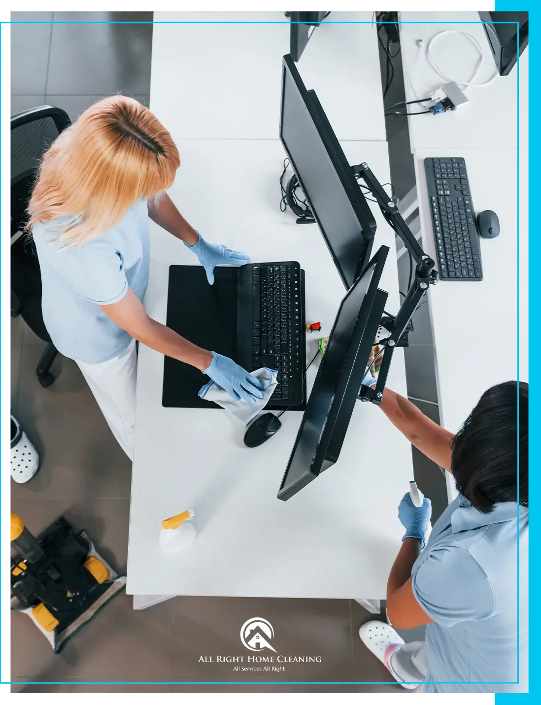 ✔ Computer Equipment Cleaning – Dusting and sanitizing of desks, keyboards, and frequently touched surfaces.